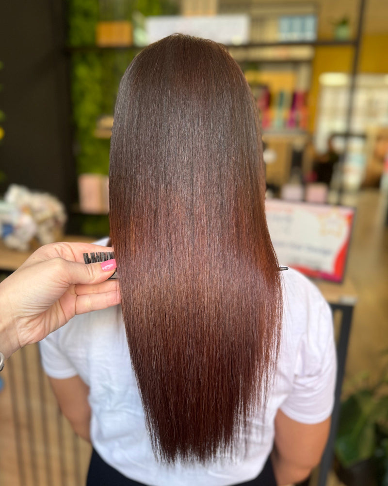 After the treatment, a hair is shiny and straight, the result is visible immediately. Treatment can be applied on both natural and chemically treated hair and, for a longer lasting effect, Cocochoco after care products are only recommended to use (free sulphate shampoo, conditioner, mask, oil, serum).