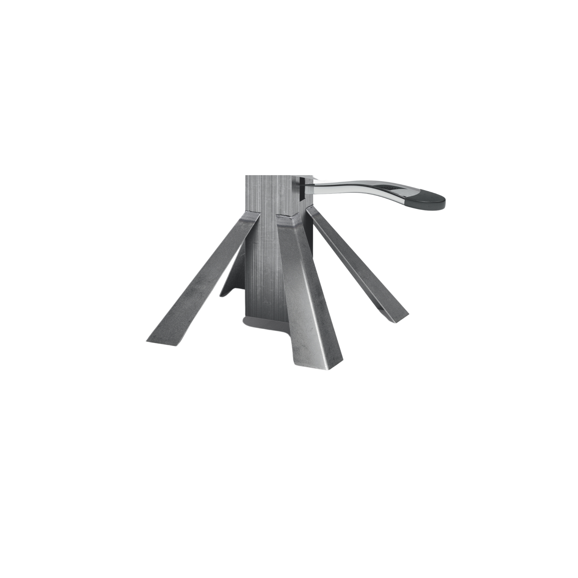 Metalna baza za frizersku stolicu s prozirnim zaštitnim slojem. Otporna i elegantna, pruža maksimalnu stabilnost i pouzdanost u svakodnevnom radu salona.