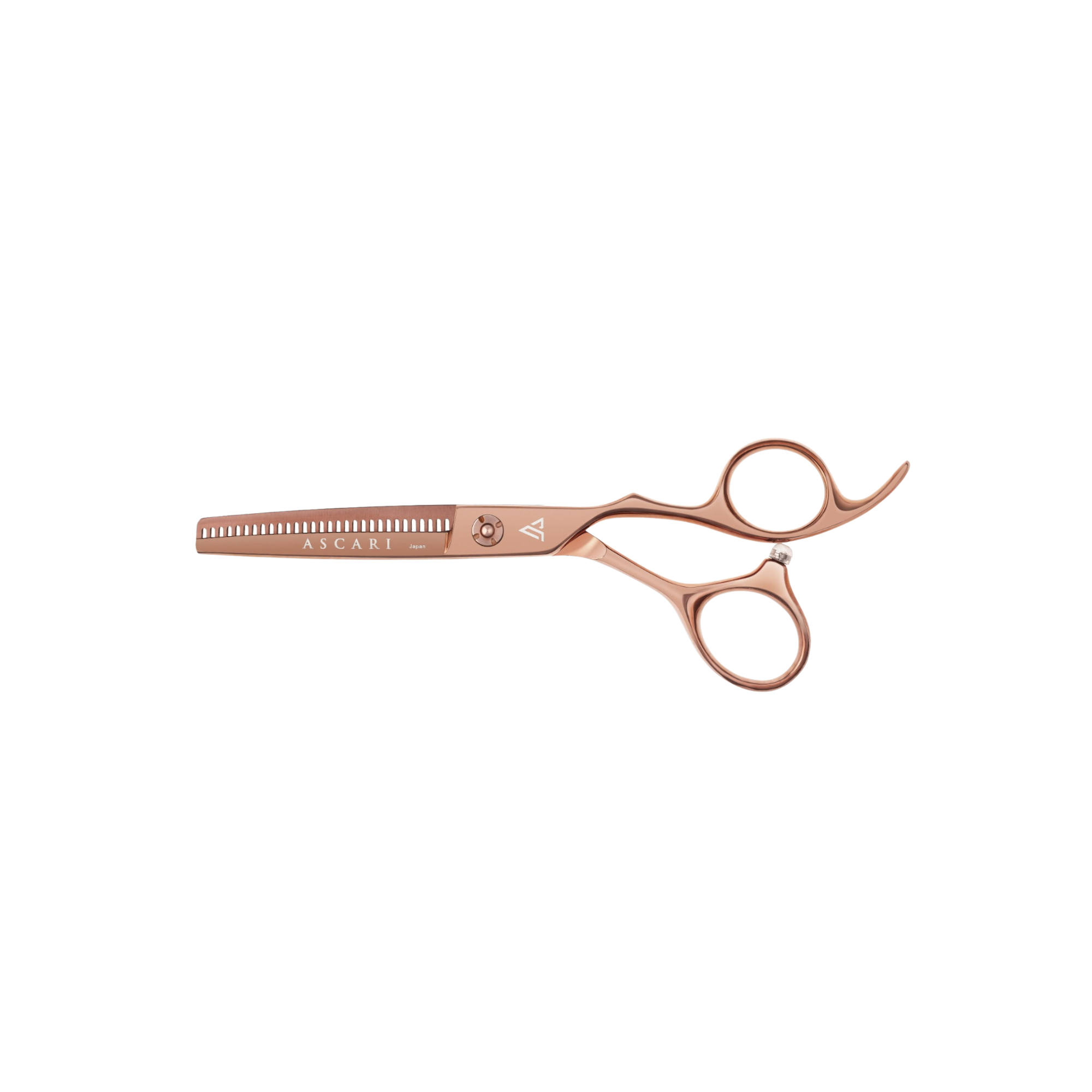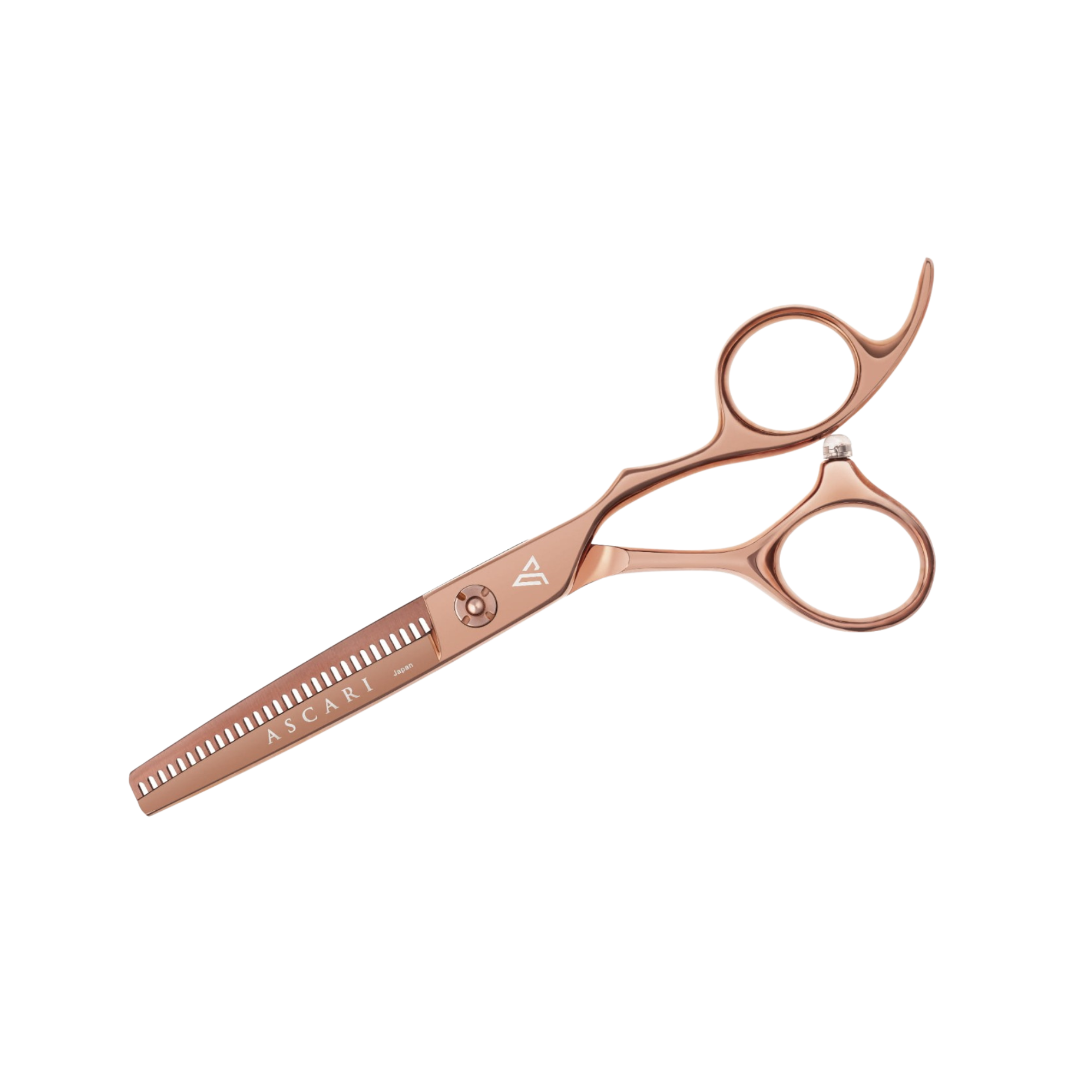 Ascari Japan Monza Edition škare za stanjivanje u veličini 5,5” izrađene su od japanskog kaljenog čelika S440C (60–61 HRC) i prekrivene Satin Gold premazom za luksuzan izgled i veću otpornost na oštećenja. Povećan promjer ručke (19 mm), pomaknuta ergonomija i kuglični ležaj s podesivom napetosti omogućuju izuzetnu preciznost i udobnost tijekom rada. Proizvedene su uz najmoderniju tehnologiju, laser­ski rezane i ručno oštrene za savršenu završnu obradu. Dolaze u elegantnoj, čvrstoj kutiji za sigurno čuvanje i transport.
